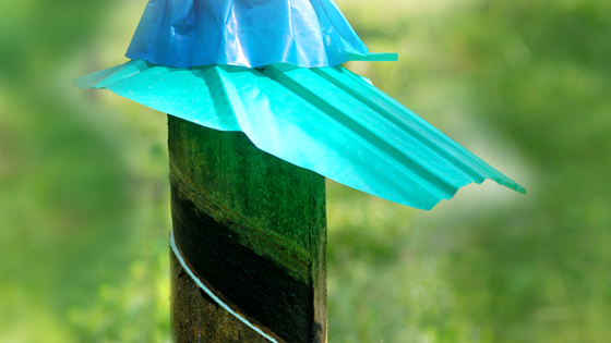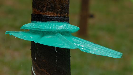 Natural rubber is obtained from the latex extracted from the bark of rubber trees by a process known as Rubber Tapping. Rubber Tapping is possible only when the bark of the tree is dry. So, proper rainguarding is necessary for uninterrupted tapping of trees during rainy season.The product is so designed as to fit on the rubber tree protecting tapping panel and latex collection cup from rain water.